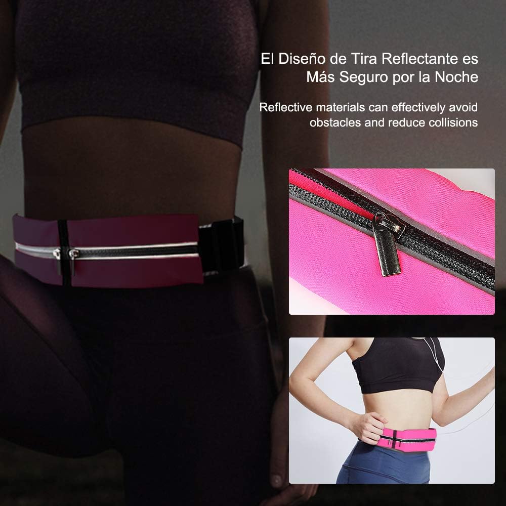Especificaciones: Cangurera Deportiva, Cinturón para Correr, Bolsa de Cintura Running Ajustable Resistente al Agua (Rosa)