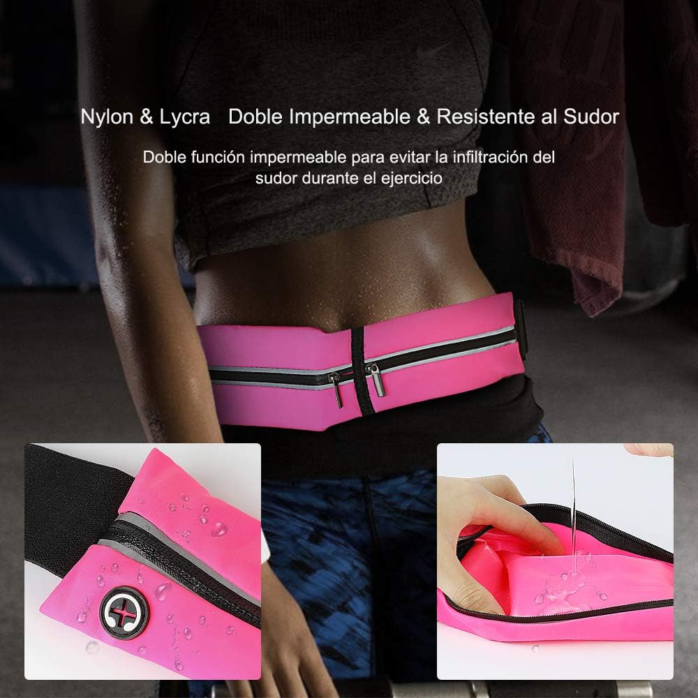 Cangurera Deportiva, Cinturón para Correr, Bolsa de Cintura Running Ajustable Resistente al Agua (Rosa)