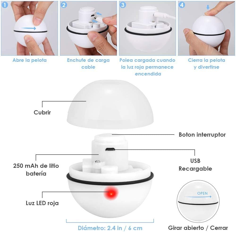 Especificaciones: Juguetes para Gatos, Bola de gato interactiva inteligente, Nueva VersiÓN 360 Grados Bola Autogiratoria, Juguete de Mascota Recargable USB, Luz LED Giratoria Incorporada