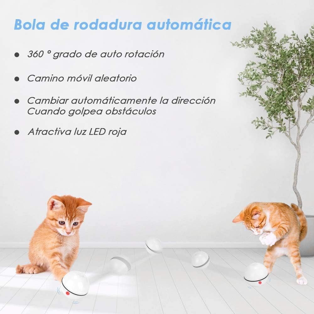 Juguetes para Gatos, Bola de gato interactiva inteligente, Nueva VersiÓN 360 Grados Bola Autogiratoria, Juguete de Mascota Recargable USB, Luz LED Giratoria Incorporada