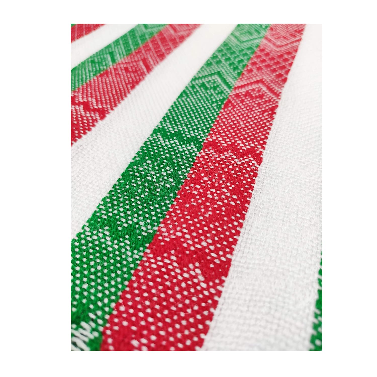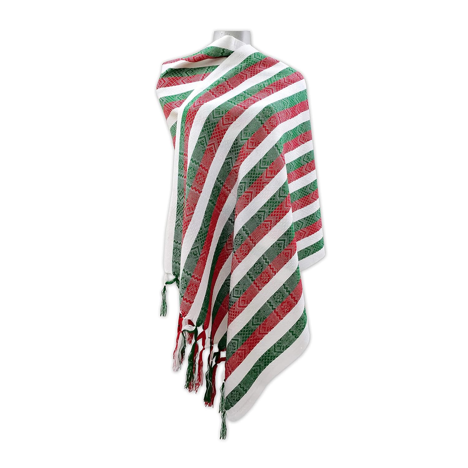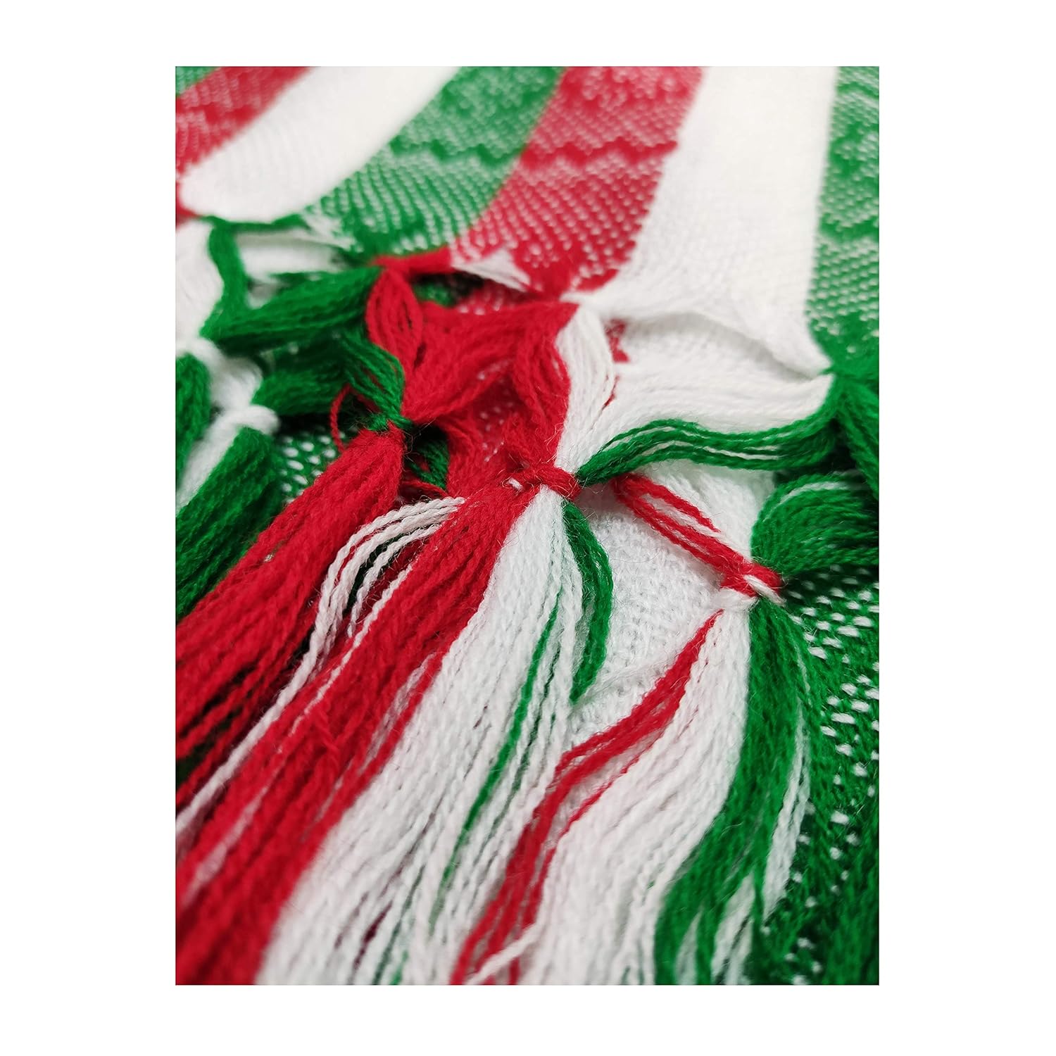 Hermoso rebozo tricolor con bastante acento Mexicano, con sus colores rojo, blanco y verde. La tela es ligera y suave con un empuntado hecho a mano. Ideal para un sourvenir o detalle.